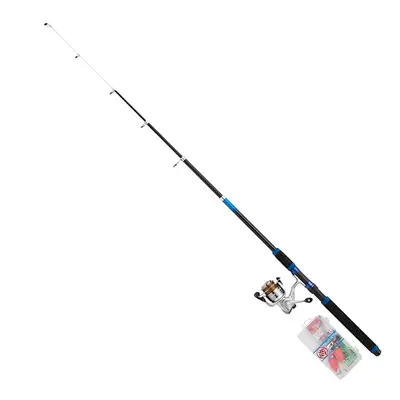 어디서나 쉽게 낚시를 즐길 수 있는 프로마린 원투 낚시 입문 세트입니다. 나일론 4호 100m가 릴에 감겨 있으며 로드와 릴이 세트로 장착되어 출시되었습니다. 대상어는 가자미, 보리멸 등입니다.