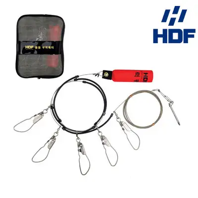 HDF 해동 돌돔 부력꿰미 세트는 돌돔 낚시용 부력형 꿰미 세트로, 로프, 부력재, 받침대가 포함된 기본형 구성입니다. 고무림 부력재와 와이어 로프로 구성되어 있으며, 엉킴 방지 튜브가 포함되어 있습니다.