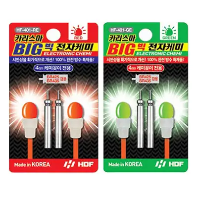 4mm 전자 케미 제품 라인. 야간 바다막대찌의 시인성을 획기적으로 개선한 4mm 케미. 꽃이 전용, 초경량 초고휘도의 빅 사이즈 전자 케미. 기존 일반 전자 케미에 비해 방수력을 대폭 강화한 100% 완벽 방수 모델. 위쪽에는 초고휘도 LED가, 아래쪽에는 전원 공급용 리튬 전지 연결부가 완벽하게 제작된 초정밀 설계 구조.