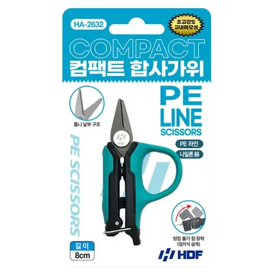 컴팩트 합사 가위로 PE 라인과 나일론 쇼 절단에 특화된 다용도 낚시 가위. 톱니날 구조로 엉킴 풀기 기능이 있으며 접이식 설계로 휴대성이 뛰어남.