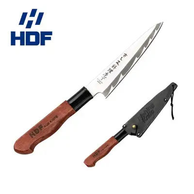 최고급 AUS스테인레스 소재의 횟감전용 고기손질 칼이 가죽 칼집 포함! 담폐 최고급 AUS 스테인레스 소재의 횟감 전용 칼. AUS 칼 + 도마 셋트 제품에서 도마를 빼고 칼집을 셋팅해 별도로 출고한 모델. 고강도·고내마모성 특제품.