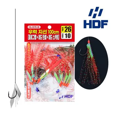 홀로그램 어피와 레드 틴셀, 레드 스커트 구성으로 대상어 유인력을 최상으로 극대화한 타입. 지선 교체형 채비로 필드상황에 맞게 지선의 길이를 조절하여 사용. 부드럽고 인장력이 우수한 라인 적용. 다양한 채비 구성으로 대상어의 어필이 강한 채비를 손쉽게 교체 가능한 지선 채비.