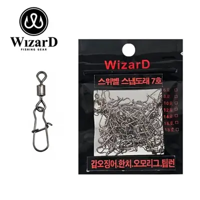 갑오징어, 한치 낚시에 적합한 7호 스위벨 스냅도래. 초경량 디자인으로 루어의 자연스러운 움직임을 유도하며, 180도 회전 핀도래로 줄꼬임 방지 기능을 제공합니다.