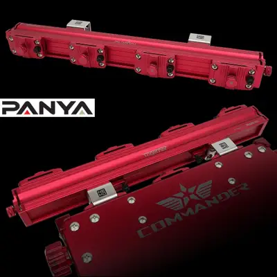 레드 색상의 멀티바 투게더 네모. 경첩 부착부와 후면 경첩 걸이 부분의 별도 이동 및 고정이 가능합니다.