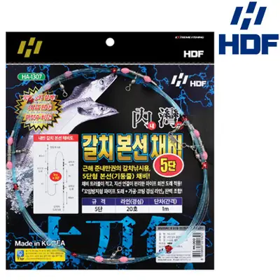 근해 준내만권의 갈치낚시용, 5단형 본선(기둥줄) 채비. 채비 트러블이 적고, 지선 연결이 편리한 파이프 회전 도래 적용. '꼬임방지형 파이프 도래' & '가공·코팅 경심 라인'의 완벽 조합.
