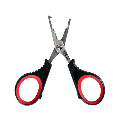 부식에 강한 고탄소 스테인리스강 소재의 집게형 합사가위. 미끄럼방지 기능의 톱날형 블레이드로 우수한 절단력을 가지고 있습니다.
