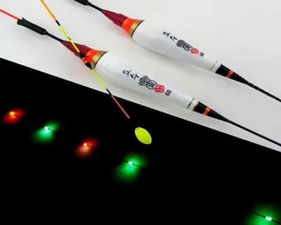 녹색 불빛, 85cm 길이, 약 6g 무게. 주야간 시인성이 뛰어난 전자찌.