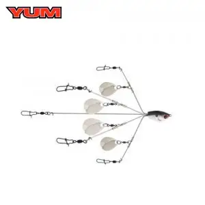 YUMbrella Flash Mob 5 Wire는 스테인레스 스틸, 열처리 와이어, 강력한 스냅 및 스위블 등 모든 기능을 밸런스 있게 갖추고 있습니다. 4개의 블레이드를 각 최고의 위치에 추가하여 엄청난 섬광과 진동을 만들어 큰 규모의 베이트 피쉬가 모여있는 이미지를 연출합니다.
