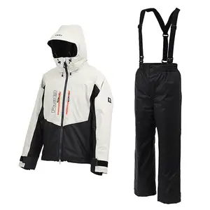 완전 방수, 얼룩에 강한 겨울 낚시슈트. 기화열에 의한 냉기를 막는 완전 방수 폴리우레탄(PU) 소재. 우천시에서도 보온력을 유지하는 완전 방수사양. 소맷부리는 물이나 한기의 침임을 막는 클로로프렌 이너 커프. 엄동기에 최적인 겨울 슈트.
