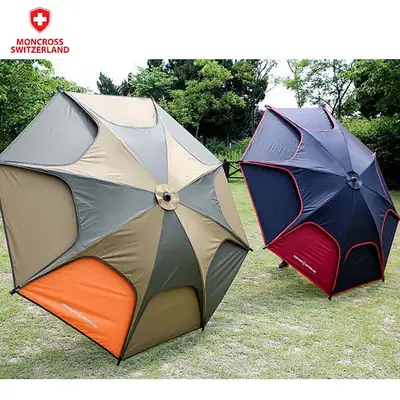 레드블랙 색상의 52인치 파라솔. 가볍고 뛰어난 방수력의 2층 파라솔로 강화플라스틱 살대 사용. 내열성이 좋고 부식이나 녹슬 위험 없음. 국내최초 냉감소재 안감으로 외부 온도보다 내부 온도를 약 6도 낮춤. 원터치 방식에 각도기 호환. 보관용 가방, 연결다리, 대형 지지대 구성.