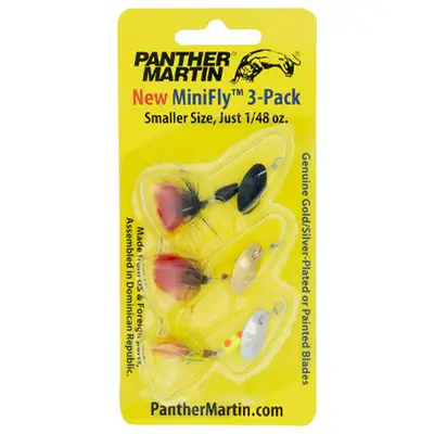 2024년 팬더마틴 미니 플라이 루어를 출시했습니다. 이 시리즈는 작은 물고기를 잡도록 특별히 설계된 새로운 소형 블레이드와 바디(1/48온스)를 특징으로 합니다. 미니 플라이™ 루어는 작은 개울과 호수에서 낚시를 즐기며 그곳에 도사리고 있는 아름다운 물고기들을 끌어들이는 낚시꾼들에게 오랫동안 사랑받아 왔습니다. 미니 플라이™ 루어는 대형 팬더 마틴 루어와 마찬가지로 뛰어난 스피닝 액션과 음파 진동을 제공합니다. 이 팩에는 가장 많이 판매되고 가장 효과적인 미니 플라이™ 루어 3개가 포함되어 있습니다. 모든 골드 및 실버 블레이드는 금 또는 은 도금 처리되어 있습니다.