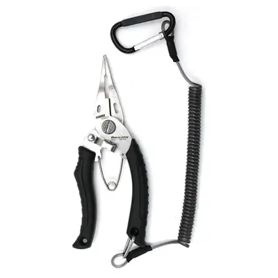 가볍고 강한 스테인리스 스틸 소재로 제작된 다용도 피싱 플라이어입니다. 인체공학적 손잡이 디자인으로 편안한 그립감을 제공하며, 라인커터 기능과 스플릿링 오프너가 내장되어 있습니다. 허리에 장착 가능한 파우치가 포함되어 보관이 용이하며, 스크래치로부터 보호됩니다. 낚시 중 혼잡한 상황에서 분실방지를 위한 스프링 줄과 카라비너가 포함되어 있습니다.