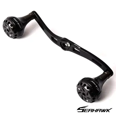 씨호크 베이트 릴 더블 핸들 130mm는 CNC가공 알루미늄 노브장착 더블핸들입니다. 약 2년간 개발된 독창적 디자인으로 일본 수출하는 공장에서 OEM 제작되었습니다. 다이와/시마노 베이트릴과 100% 호환되며 노브만 별도로 떼어내어 사용 가능합니다. 각 노브별 볼베어링 2개씩 장착되어 부드러운 회전성능을 제공합니다.