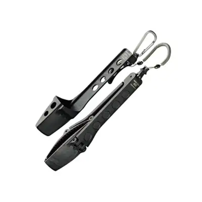 초경량 고강도 CFRP 소재 물고기 집게. 트리플 조인트 구조로 턱이 크게 벌어지며, 악어 이빨형 교호 치열(선단부)로 물고기를 단단히 홀드. 에어(공중) 캐치 시에도 안전. 미끄럼 방지 가공의 5개 돌출 사양으로 손가락에 밀착. 홀스터(231×48×45mm, 52g) 포함. 카라비너 D루프 대응, 안전 로프(최대 120cm) 포함.