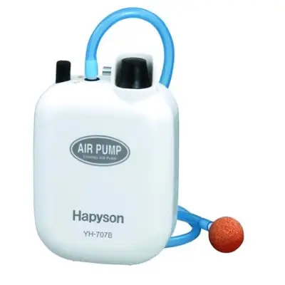 건전지 에어 펌프. 65시간까지 실행 가능. 호스 스톤 포함. 단 1개의 건전지 사용 (별매). 연속 약 65시간 (알칼리) 사용 가능. 훈품 용량 약 0.45L/min. 크기 약 80 × 50 × 120mm. 질량 본체 약 300g (배터리 포함). 모터 수명 약 1,000시간. 호스 길이 약 60cm.