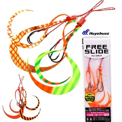 하야부사 인기 모델 시그니처 타이라바 스커트 SE188 모델을 강력한 후킹력의 SE190 어시스트훅과 간편 채비 결합 어댑터 SE168로 제작한 참돔 타이라바 완성채비 입니다. 일반적인 시트의 약 2배에 해당하는 0.6mm 두께의 벌키 더블컬리로 한쪽은 큰 파동을 유도하는 와이드 타입, 다른 한쪽은 작은 파동을 유도하는 쇼트 타입으로 각각 다른 파동으로 더욱 강력한 어필력의 타이라바 전용 스커트입니다. 인기 컬러조합으로 제작하여 더욱 간편하게 바로 출조 나가실수 있도록 인기 파츠들만으로 구성하여 더욱 쉽고 재밌게 낚시를 즐기실수 있습니다.