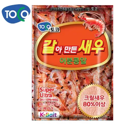 갈아만든 새우 어분콩알 떡밥. 남극해 크릴새우와 집어 성분이 첨가된 민물 떡밥. 아스타잔틴, DHA, EPA, 오메가3 등 고기가 좋아하는 성분 다량 함유. Zipper Bag 포장. 제조국: 대한민국.