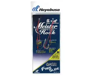 하야부사 메이스터훅은 타이라바용으로 개발된 전용 후크입니다. 바늘 소요의 장점을 살리면서 세부 조건을 개선하여 자연스러운 연출과 뛰어난 먹이 반응을 실현합니다. 헤드와 러버가 분리되어 폴 시 부드러운 먹이 반응을 보이며, 헤드, 러버, 후크 모두 빠른 교체가 가능합니다. 또한 네크타이의 엉킴을 방지하는 아웃바브와 뛰어난 관통 성능을 위한 불소 코팅이 적용되었습니다.