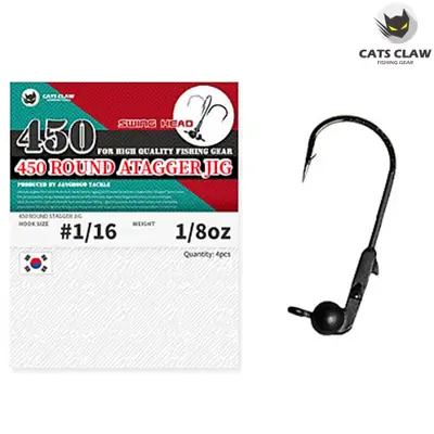 1/0 사이즈, 1/20oz 무게. 스윙 액션 지그헤드로 웜 이탈 방지 기능이 있습니다.