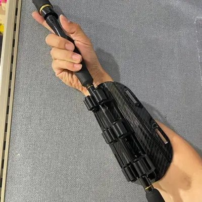 팔(손목, 팔꿈치) 부담을 줄이도록 고안된 낚시 보조기구. 팔에 장착해 장시간 낚시가 가능하며 벨크로 스트랩으로 간편하게 고정.