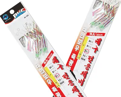 대구 전용 바늘 채비. 레인보우 오로라어피 축광 사용으로 인해 고기 유인에 탁월한 효과 발생. 깃줄기장은 취향에 맞추어 조절 가능.
