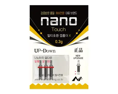 X타입 캡홀더로 다양한 채비와 연결하여 업다운 기능을 사용할 수 있는 나노터치 메커니즘의 결정판. 상하 캠 구조로 일체형 오링 이동이 가능하며 0.3g의 초경량 무게를 자랑합니다.