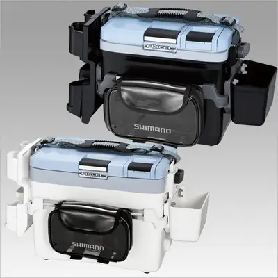 라이트 게임 전용 아이스박스. 12L 용량으로 소형 루어 낚시에 적합. 항균 소재 채용, 원액션 물마개, 하이그립러버 탑재. 뚜껑 원액션 개폐, 물고기 투입구, 내부 칸막이 부속 등 편의 기능 제공.