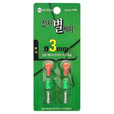 전자 별 케미용 3mm 리필 전지입니다. 일반케미와 무게와 직경이 동일하여 따로 찌맞춤을 할 필요가 없습니다. 민물낚시와 바다낚시 모두에 사용 가능합니다.