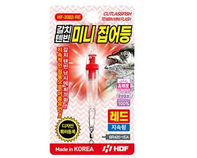 지속적으로 점등하는 LED 수중 미니 집어등. 갈치 텐빈 낚시에 최적화. BR425 배터리 1개 사용 (별도구매). 스냅 도래 일체형으로 빠른 채비 운용 가능. 수중방수·바람의저항최소화를극대화한설계및디자인특허등록으로믿을수있는제품.