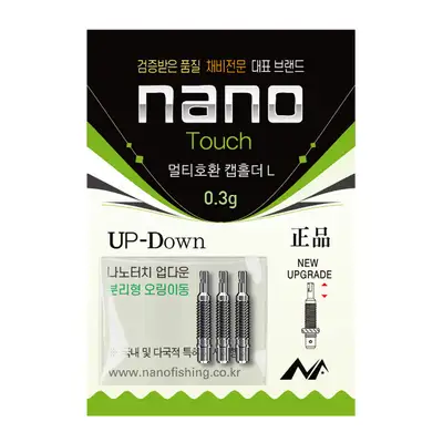 L타입캡홀더0.3g 멀티호환하캡. 다양한 채비와 연결하여 업다운 기능을 사용할 수 있는 나노터치 메커니즘의 결정판! 별도 찌맞춤 없이 모든 위치로 이동하여 사용할 수 있습니다.