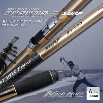 스파르타-S 서프 25-425 (Grip 680mm) / 원투 캐스팅 및 실조전용 초원투를 지원하는 파괴력 있고 탄력성이 슈퍼 금인 캐스팅 전용 로드, 한국인 체형에 가장 적합한 중량감과 길이로 기본 130m 이상의 비거리를 확보했다. 캐스팅능력에 따라, 150m 이상도 캐스팅이 가능한 제품. 틀낚시로 고심 발이 낚시가 가능하다.