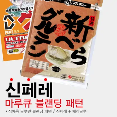 전통 바닥낚시 집어용 글루텐 2합 세트. 집어용 글루텐 블랜딩 패턴으로 신페레 + 페레글루 조합. 채탈 후 5분간 안정 후 10~20회 치대어 사용.