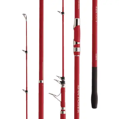 원투대·진출 SPIN POWER. 페어리 레드를 두른 대물 거치식 전용로드. 신차원의 파워와 탄력으로 대물을 잡는다.