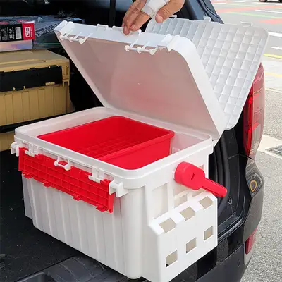 다기능이 가능한 중간 수납공간 / 48구 에기보관트레이 / 메이호제품호환가능 / 완벽고정된 미끄럼방지패드