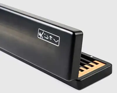 견고한 최고급 원목 소재로 제작된 원줄 채비함. 흔들림없는 견고함과 고급 보관 파우치 증정.