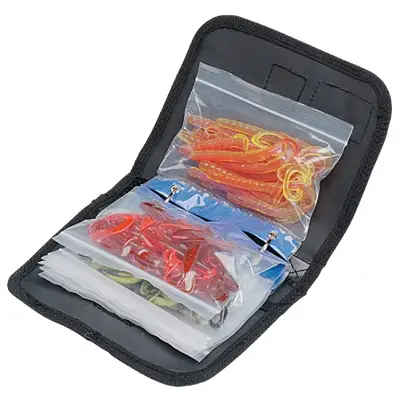 대형 사이즈로 더 많은 양의 웜을 보관할 수 있습니다. 소형과 동일하게 10개의 투명 지퍼백과 터미널 태클 수납 포켓이 포함되어 있습니다.