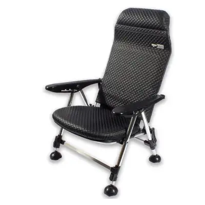 블랙 컬러의 체어맨 프리미엄 낚시의자. 메모리폼 쿠션과 5단 등받이 조절 기능을 갖추고 있습니다.