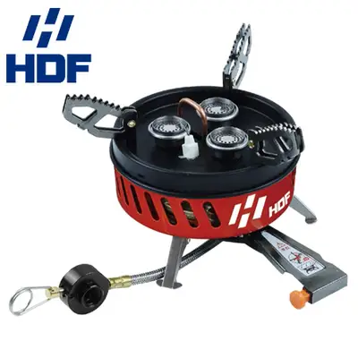 이중 예열 장치로 가스의 손실이 없으며 가스 소비량에 비해 강력한 화력 높은 고열에도 강한 테프론 코팅 상판 조리용기를 보다 안정되게 하고 접을 수 있어 휴대가 간편한 접이식 받침대 3구 토치형 직결식 버너헤드 화구