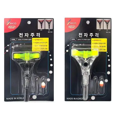 블랙 바디 컬러의 전자주걱. 낚시대를 얹으면 불이 꺼지고 들면 불이 켜지는 기능.