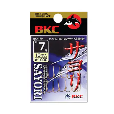 BK-170-A 학공치. 100% 하이카본 소재를 사용하여 큰 힘에도 견딜 수 있는 인장강도를 보유함. 최신공법을 사용해 바늘 끝을 날카롭게 가공. 특수 열처리 기법 적용. 색상: 금. 원산지: 대한민국(Made in KOREA).