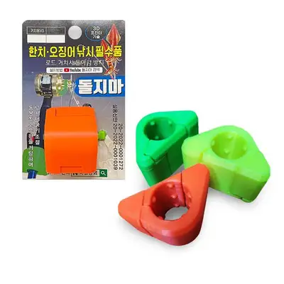 한치·오징어낚시 필수품 로드 거치용 회전방지 액세서리. 강화 플라스틱 소재, 구성품은 돌지마 V3 본체 1개와 완충용 고무판 1T 약 20cm 1개.