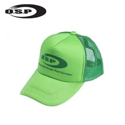 O.S.P 로고가 프린팅 되어있는 메쉬캡 입니다. 뒤쪽에 사이즈를 조절할 수 있는 밴드가 채용되어 있습니다.