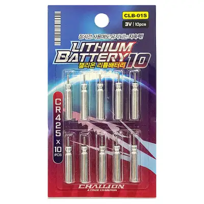 3V 리튬 배터리 CR425 10개입. 장시간 사용 가능한 리튬 전지로 야간 낚시용 전자찌, 전자 케미, 소형 전자제품에 호환 가능.