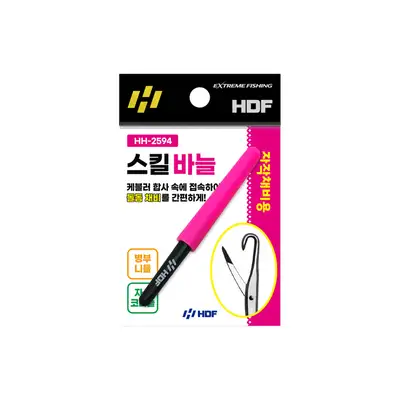 케블러 합사 속에 접속하여 돌돔 채비를 작업하는 자수 바늘. 병부 니들 & 자수 코바늘로 자작 채비용으로 사용. 휴대 시 날카로움을 방지하는 캡 적용. 가벼운 플라스틱 소재의 손잡이로 한손으로도 무리없이 사용 가능.