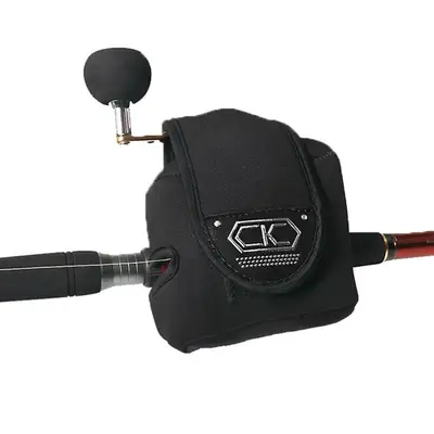 CK 전동릴 케이스. 전동릴 파우치 3000번, 간편한 원터치 결합방식, 입체형 설계 제작, 릴을 낚싯대에 부착한 채로 사용 가능, 5mm 고급 방수 네오프렌 사용, 3000번 모델은 모두 우핸들형으로 제작.
