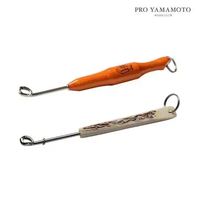 야마모토공방 나루호도바늘빼기롱타입(우드,사슴뿔그립) (*천연목을 사용하여 그립 디테일이 조금씩 다를 수 있습니다.) 물고기가 오른쪽이라면 아래에서 라인을 넣는다. 물고기가 왼쪽이면 라인 위에 씌우고 앞에 끌고 라인을 넣는다. 밀어넣는다. 바늘을 걸어 빼낸다. 구슬, 목줄방지 링 ① 사용시 링은 위로