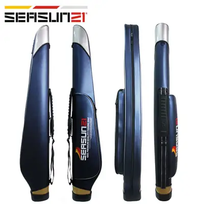 130x20x15(cm) 사이즈의 바다낚시가방. 내부에 낚시대를 고정시켜 장비를 보호할 수 있는 스트랩, 이동이 편리한 중앙 손잡이, 상단 다용도 고리, 하단 PVC 바톤 등 다양한 기능을 갖추고 있습니다.