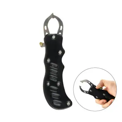 립그립 공구. 인체공학적 커브 디자인으로 편안한 그립감을 제공하는 피싱 그립. 버튼식 개폐 방식으로 한 손으로 간편하게 사용 가능. 분실 방지용 스프링줄과 카라비너 포함.