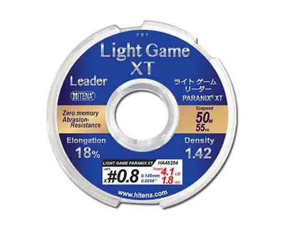 | #0.80 / 50m | 리더 | 쇼크리더 | 3.2 | 0.80 | — | 0.148mm | 50m | — | — | 라이트게임 | — | O |