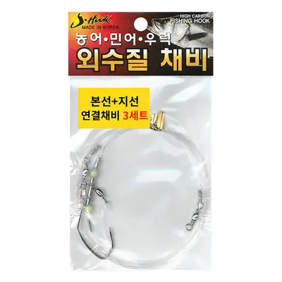 농어, 민어, 우럭 외수질 본선+바늘채비 3세트. 크레인 도래를 사용함으로서 회전과 강도가 높아져 채비엉킹과 채비 정렬에 효과적입니다.